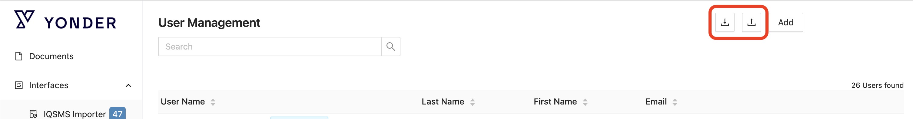 By clicking Export, you will download the current list of users in XLSX format. This exported file can also serve as a template for importing users.