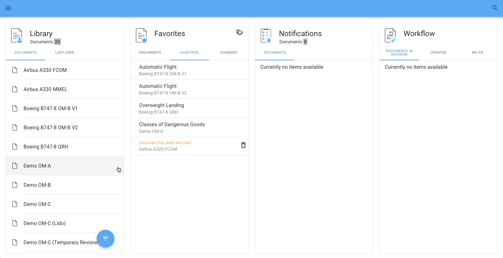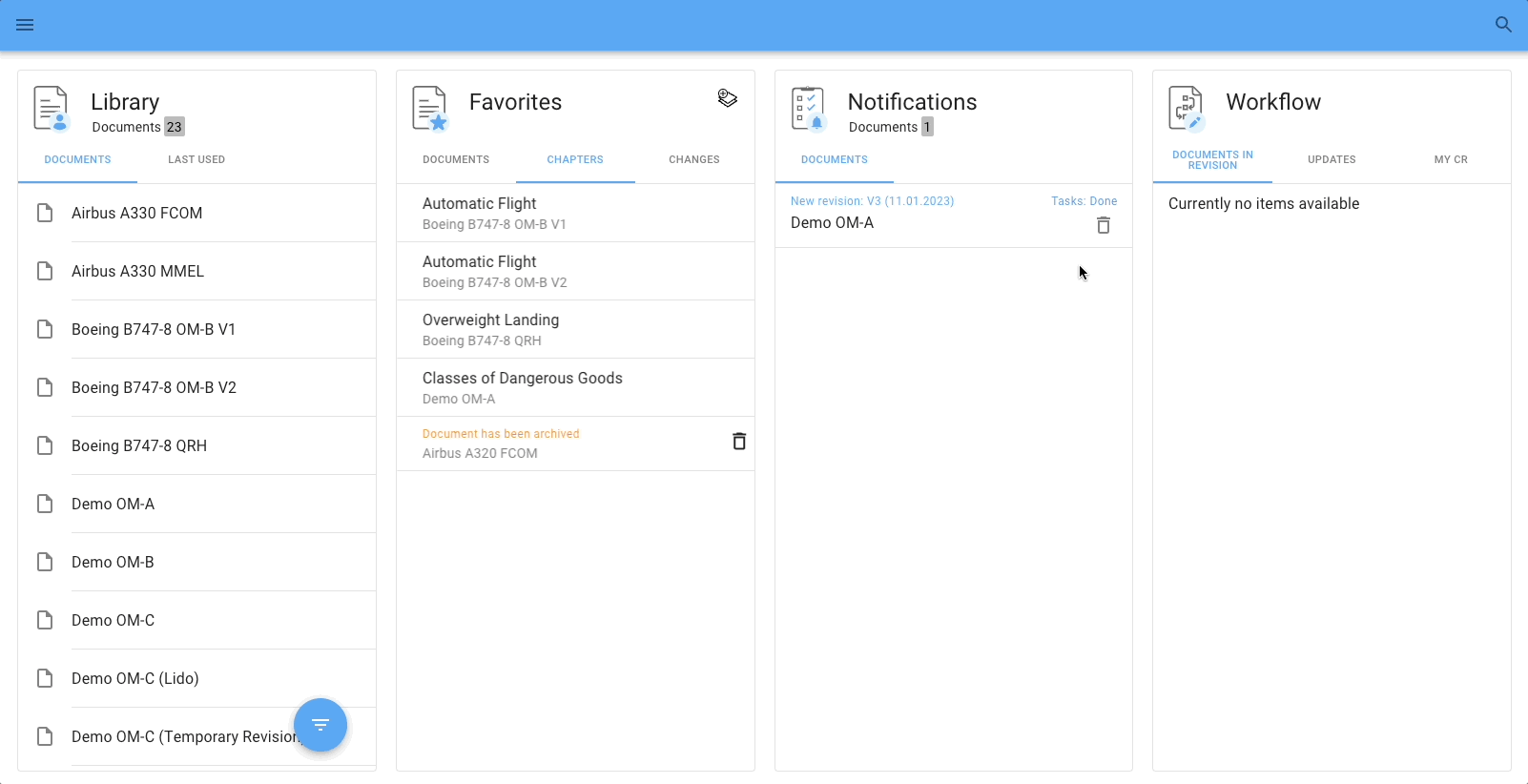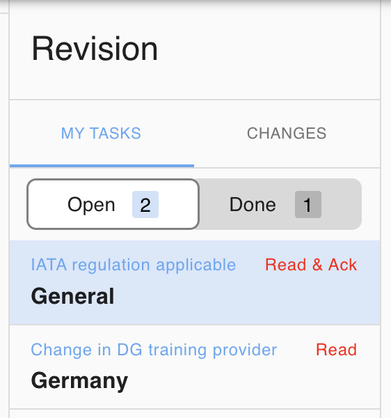 - MY TASKS: Displays all of the revised items that users have also initially received via the Notification Center, as previously alluded to above (= the changes relevant to their role and mission)