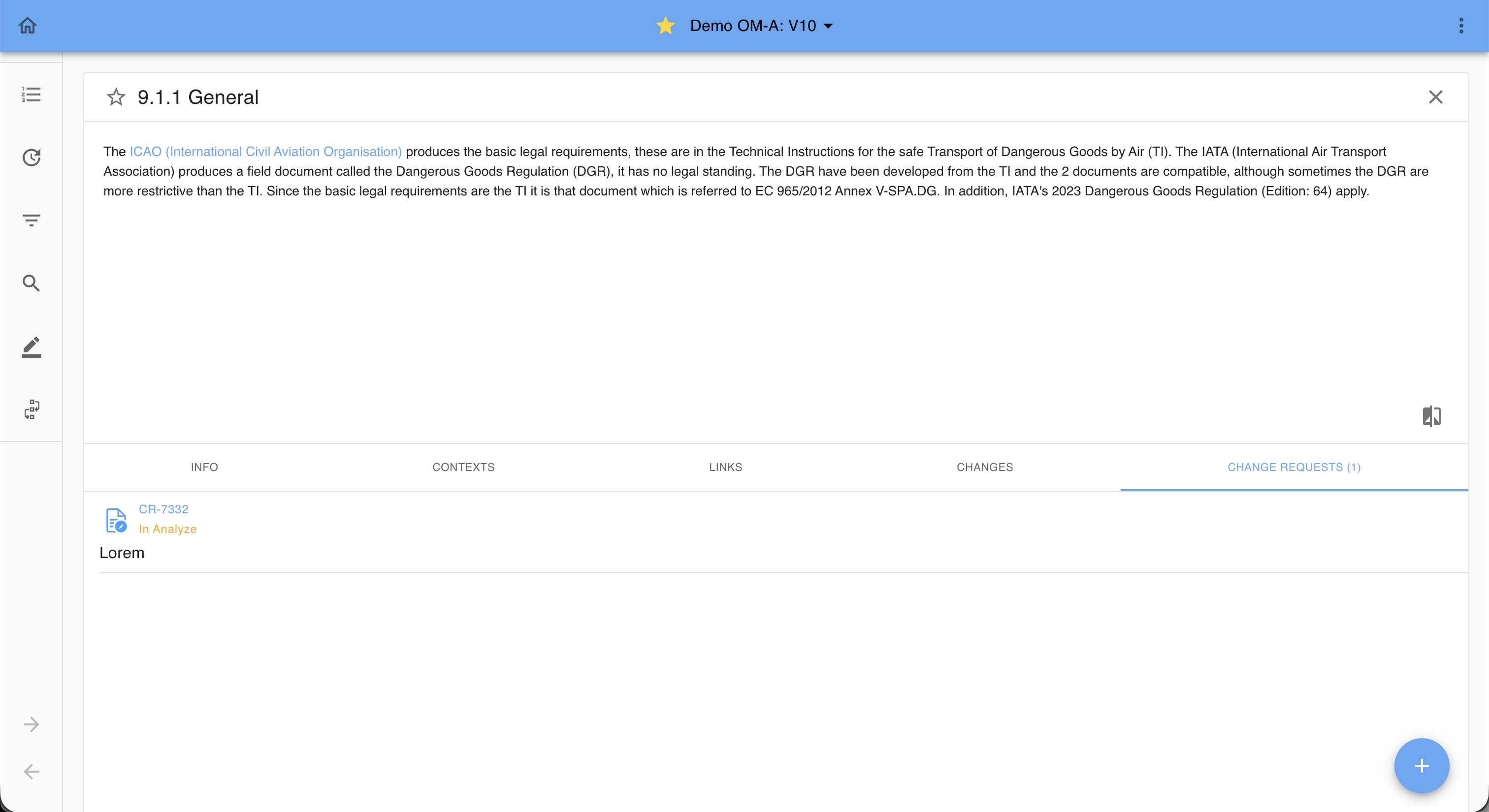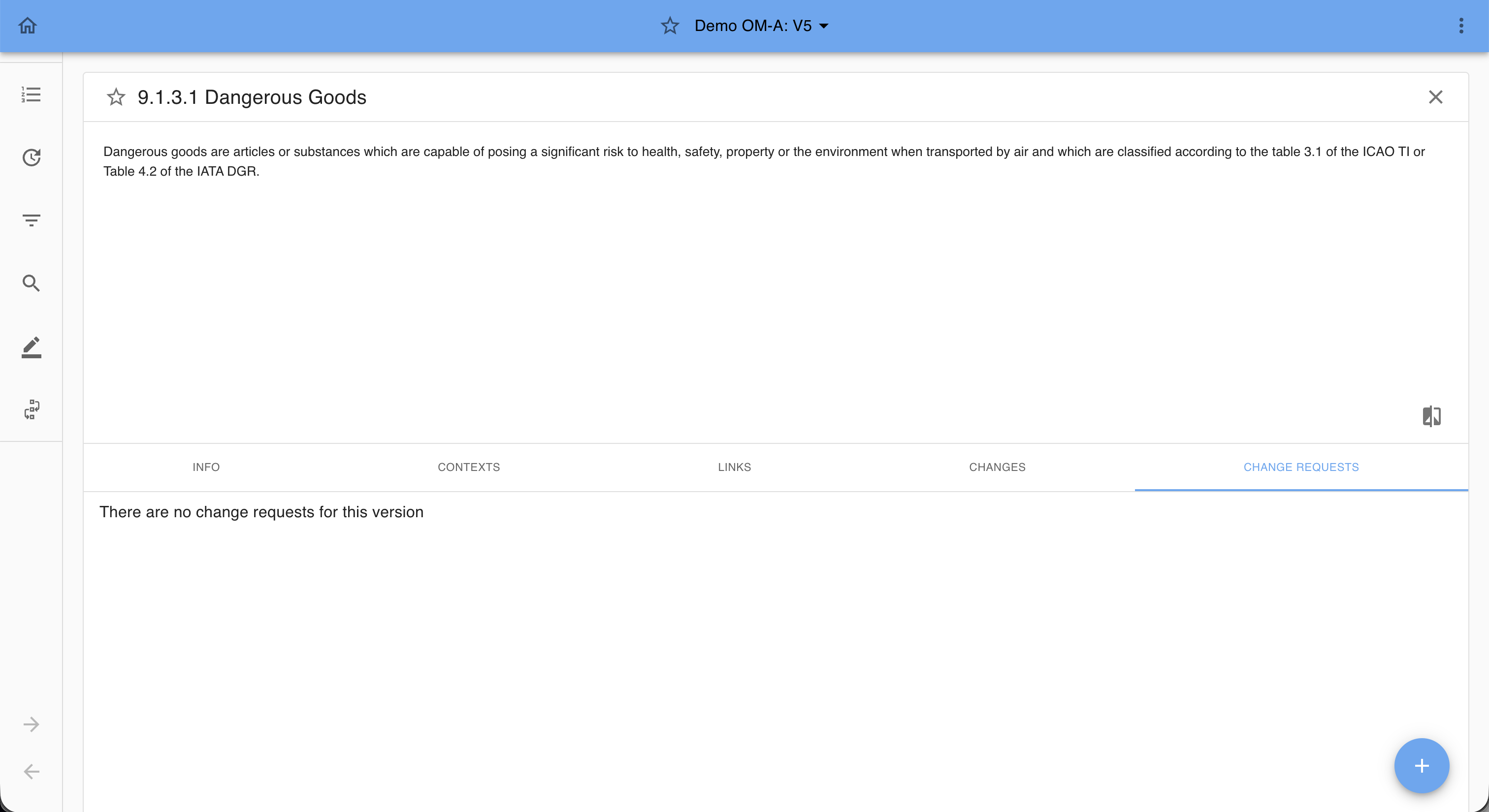 -> If the plus icon is not visible, you do not have permission to create change requests for this document.
