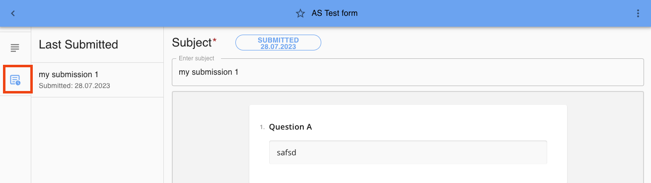 If you have multiple submissions of the same form, you can easily navigate to your last submissions by opening the tab ‘Last submissions’: