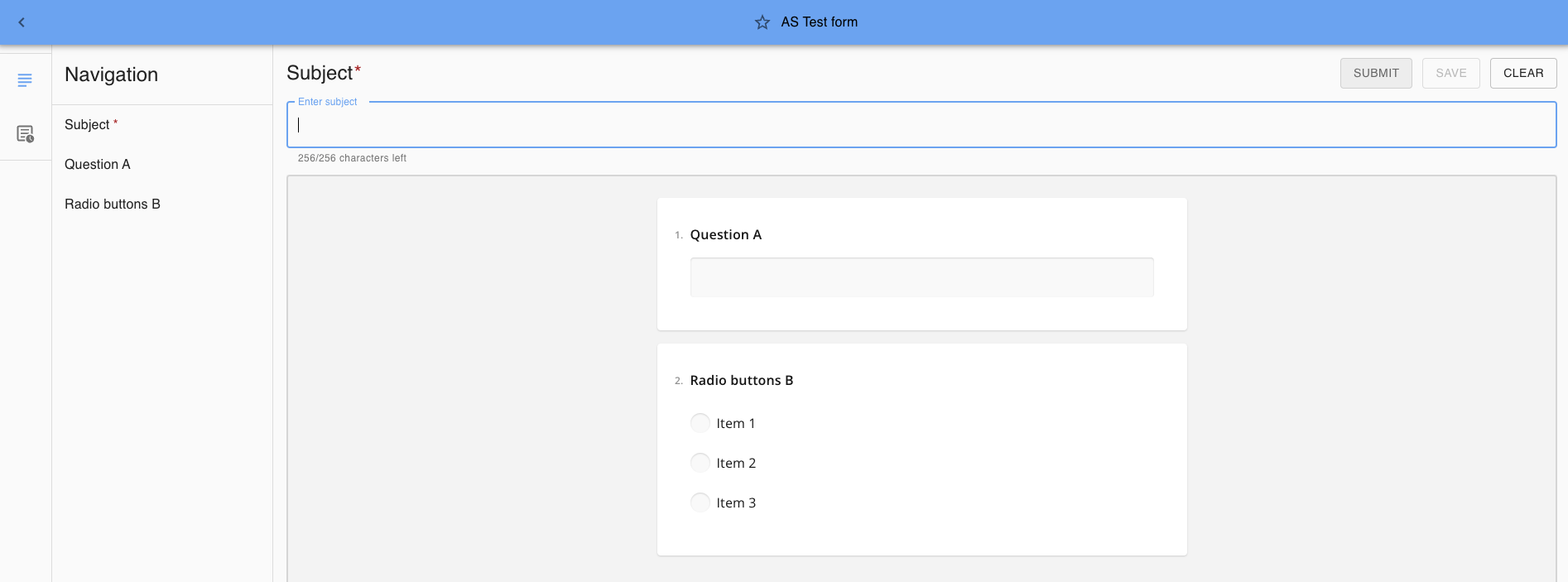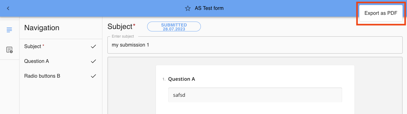 Note: you must fill in the mandatory ‘Subject’ so that you can identify your submitted form more easily in the future. See below chapter ‘Select a submission’.