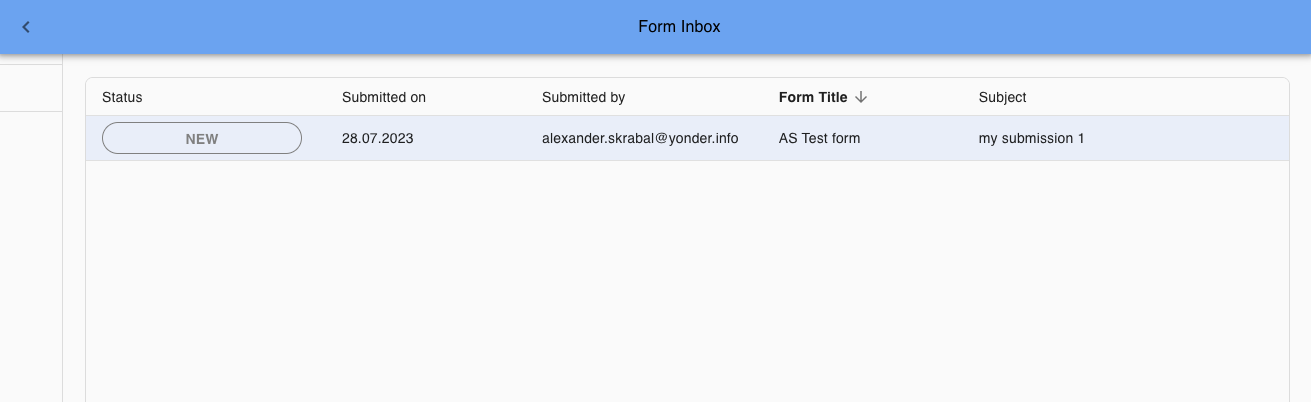 In order to administer the Forms Inbox you can sort all columns in the table: