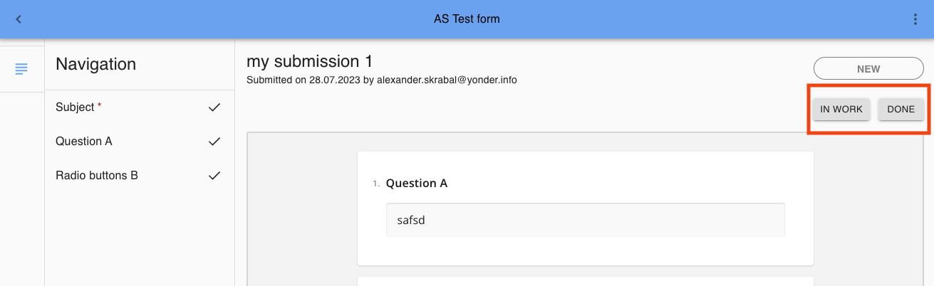 On the individual submission you can change the submission status by clicking on the corresponding button.