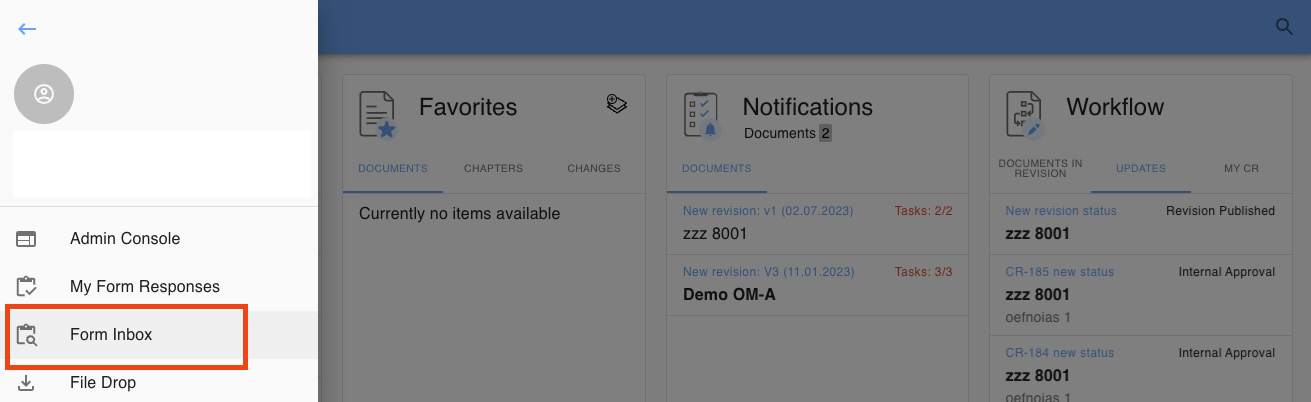 You can access the Form Inbox from your sidebar: