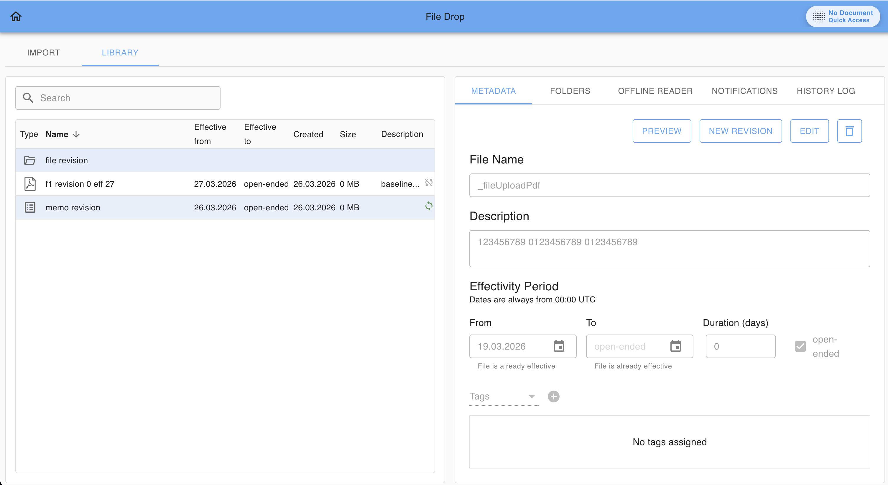 - In the File DropLIBRARY select the file and open ‘New Revision’ from the pop-over