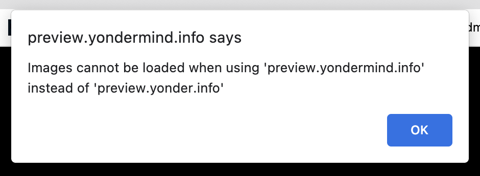 - Error message: Images cannot be loaded when using ‘<name>.yondermind.info’ instead of ‘<name>yonder.info’