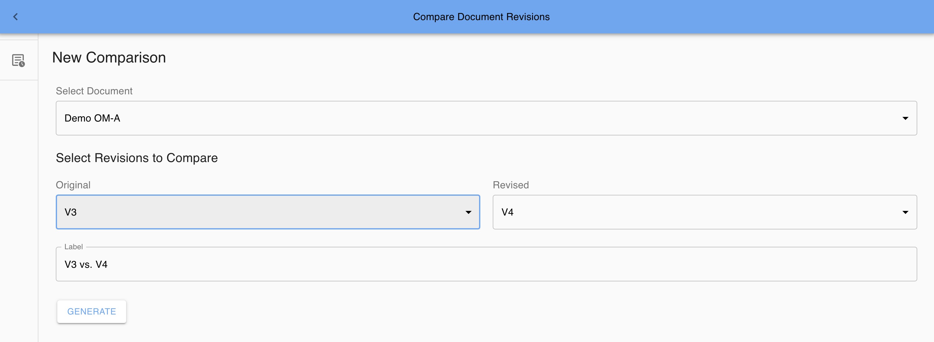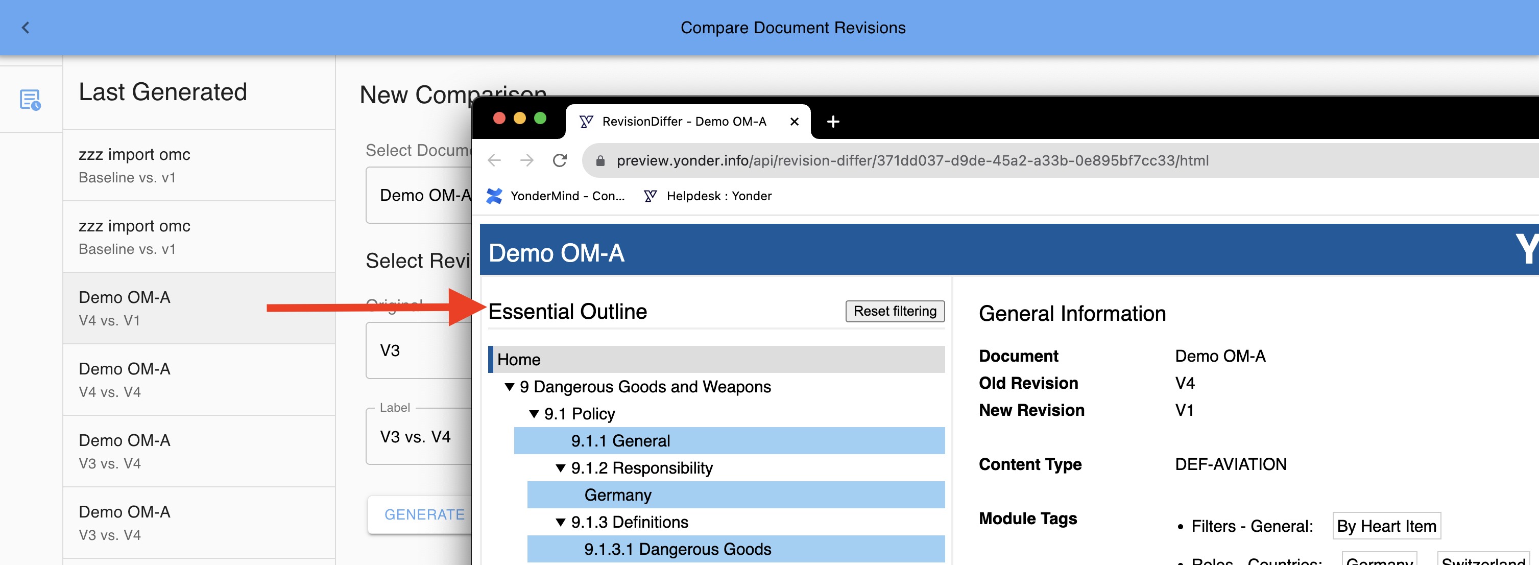 Compare Revisions allows to compare two revisions of the same document in order to visualize the changes implemented.