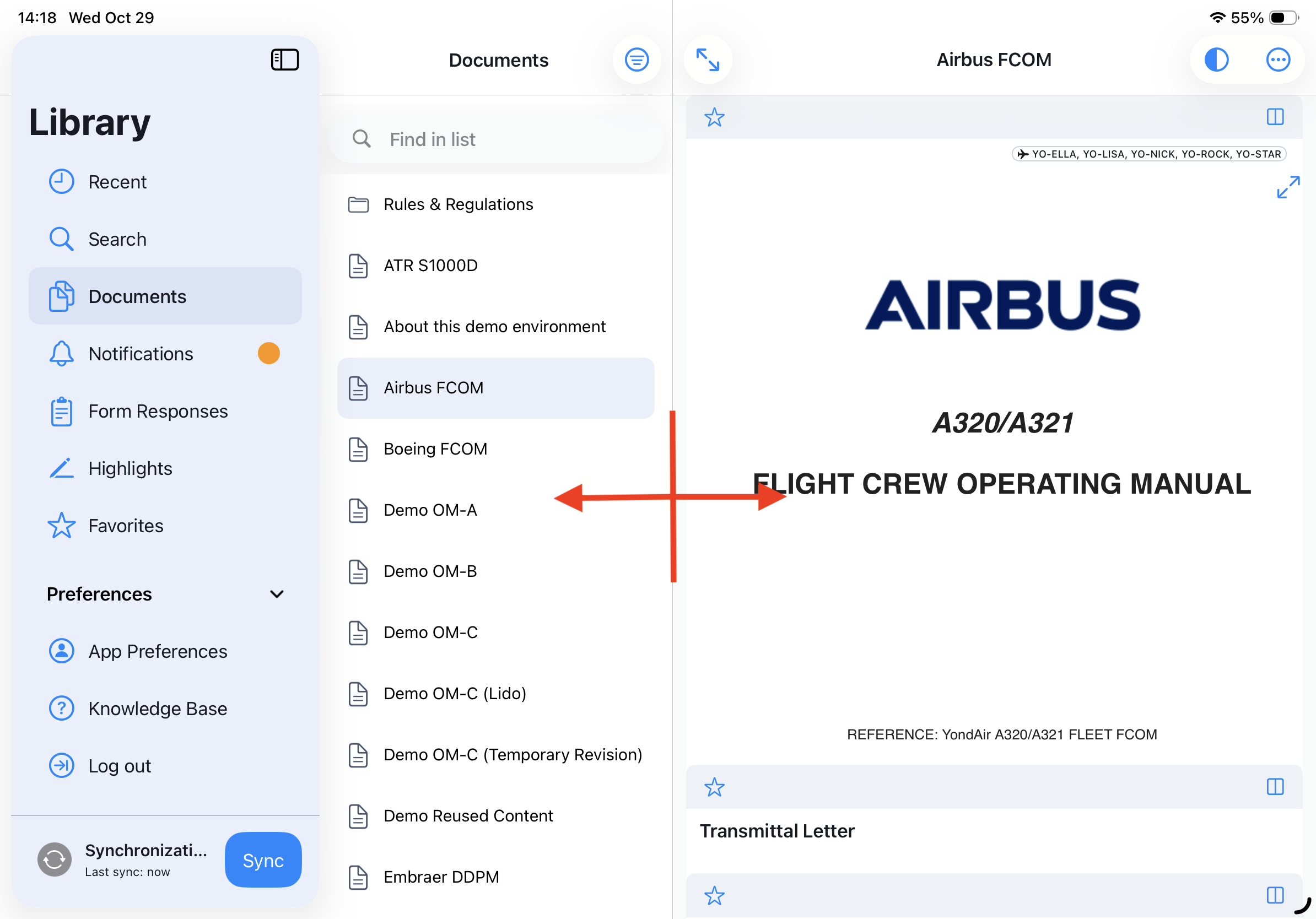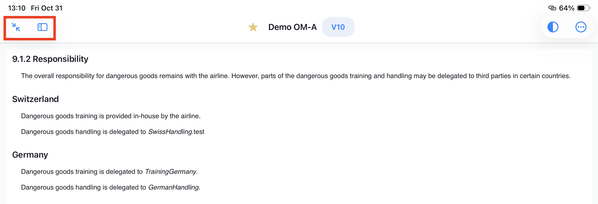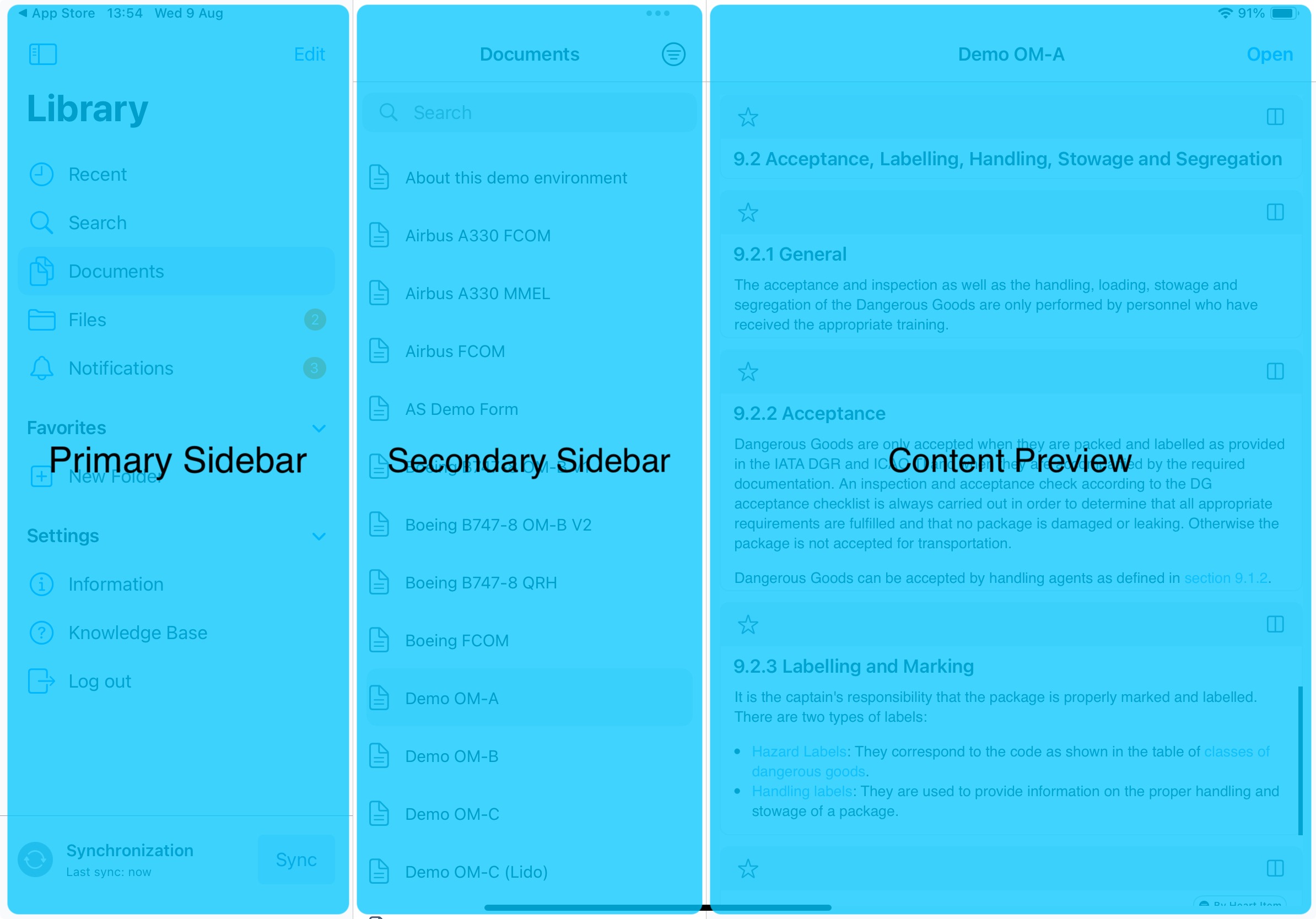 Drag the sidebar edge of the second column left or right to adjust its width and modify the content preview viewport on your iPad: