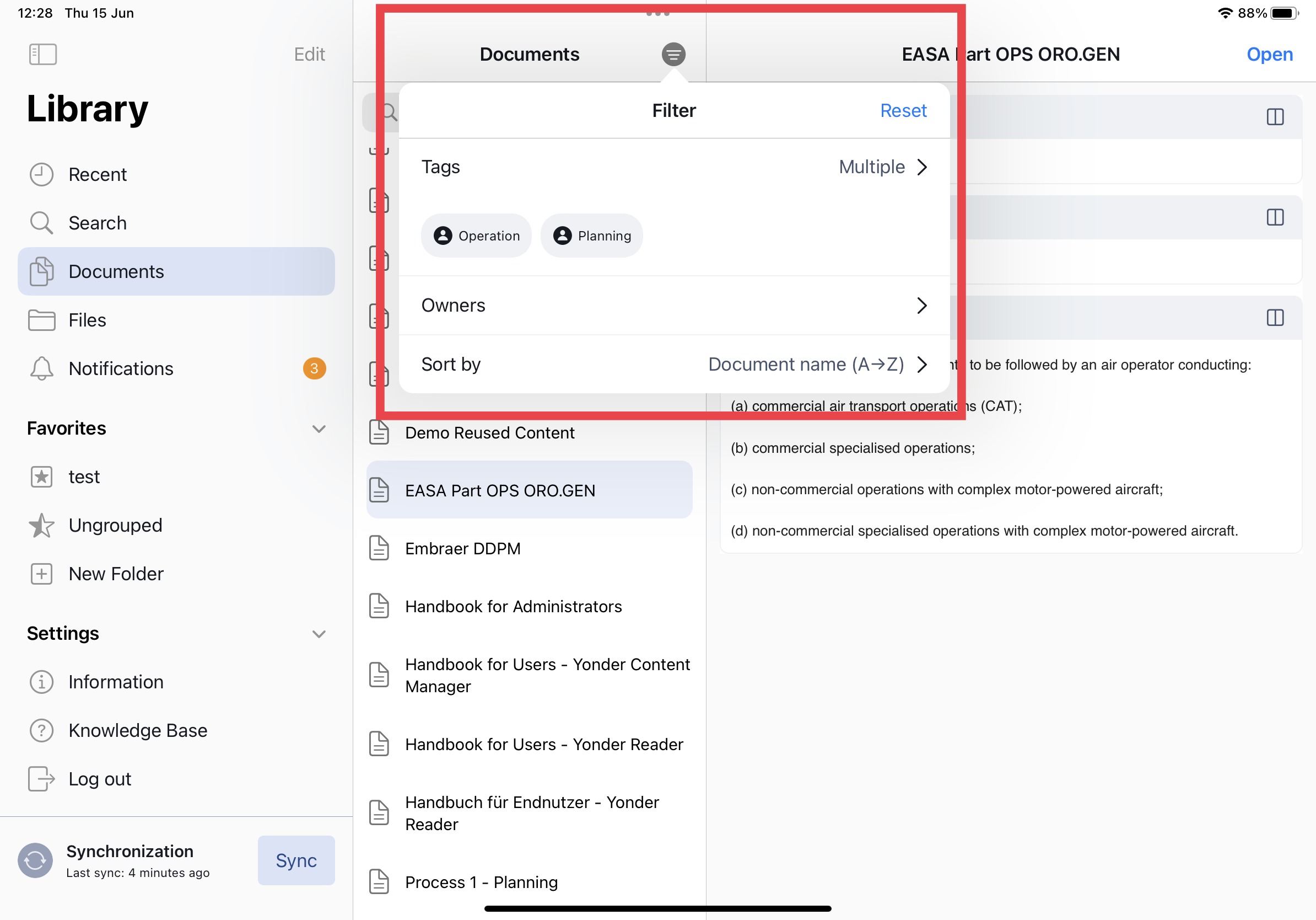 Clicking on the filter icon opens the pop up window to selected tags. However only tags that are applicable to the list / document will be available for your convenience.