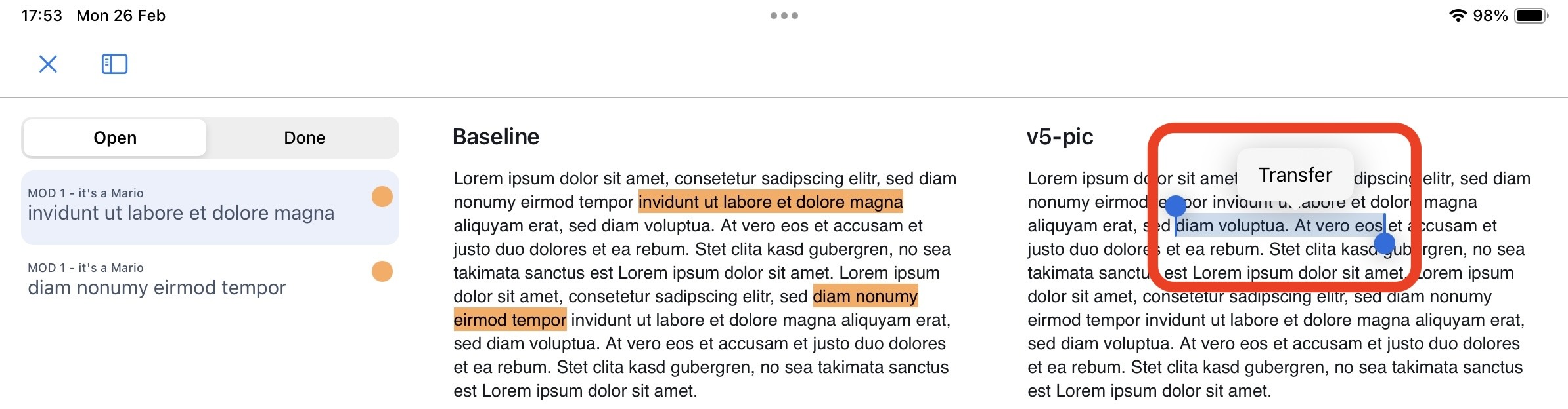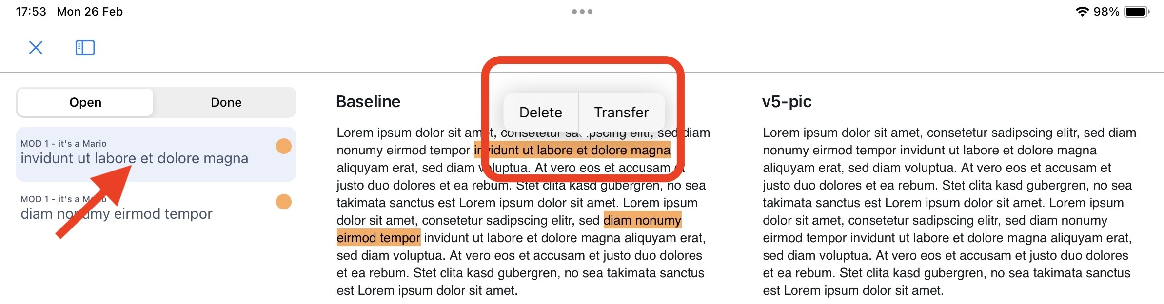 - select the highlight that you intend to replace and click on ‘Transfer’: