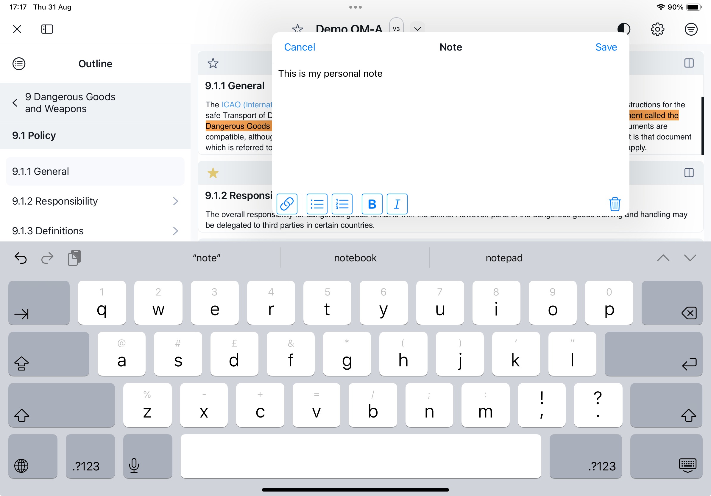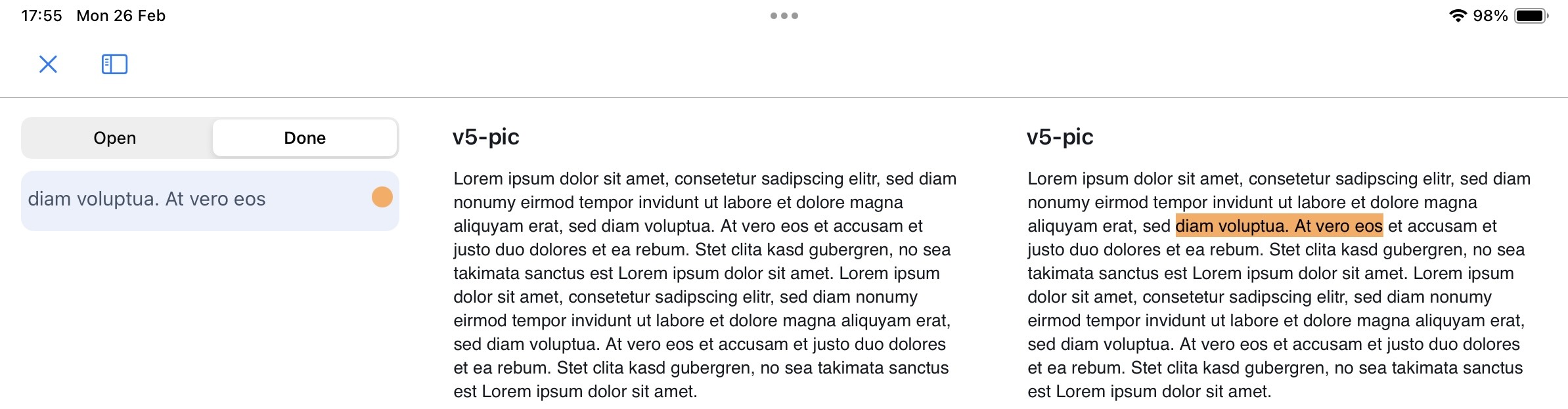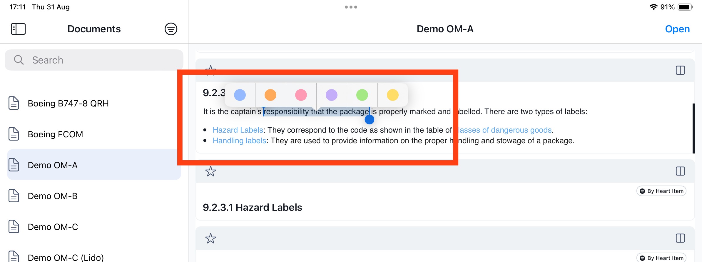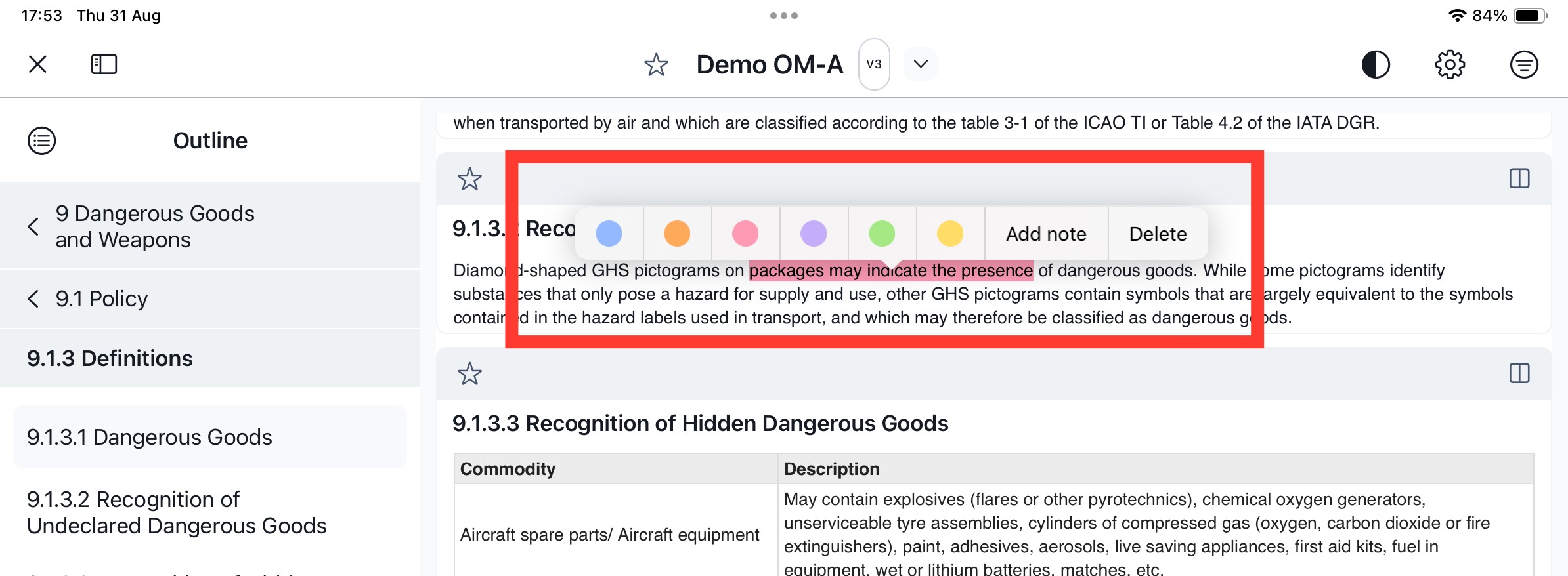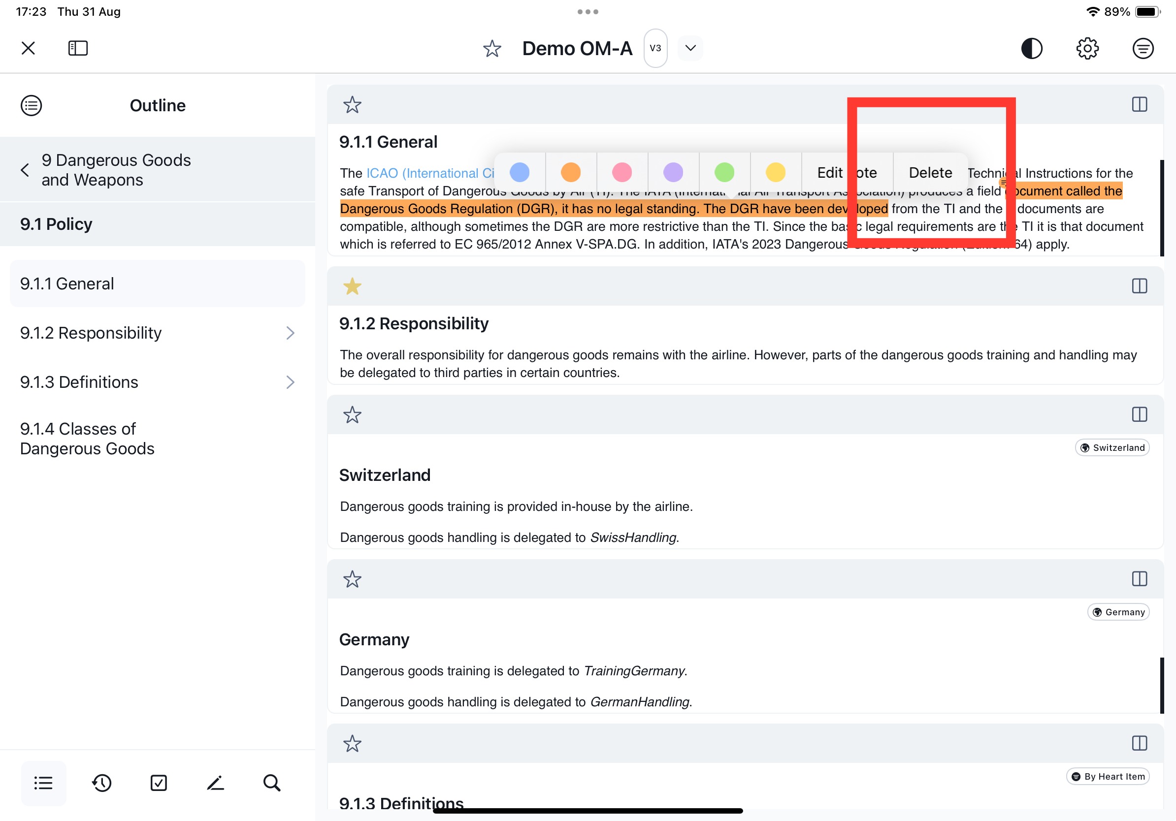 Highlights & Notes is a feature that enables you to mark a selected text excerpt and optionally add a note. You can access the Highlights & Notes within a document via a dedicated sidebar.