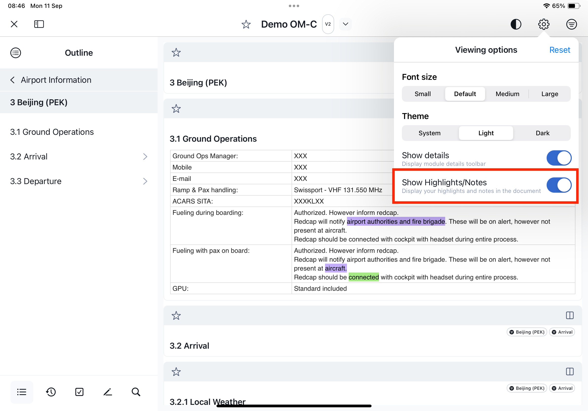 Toggle highlights and notes