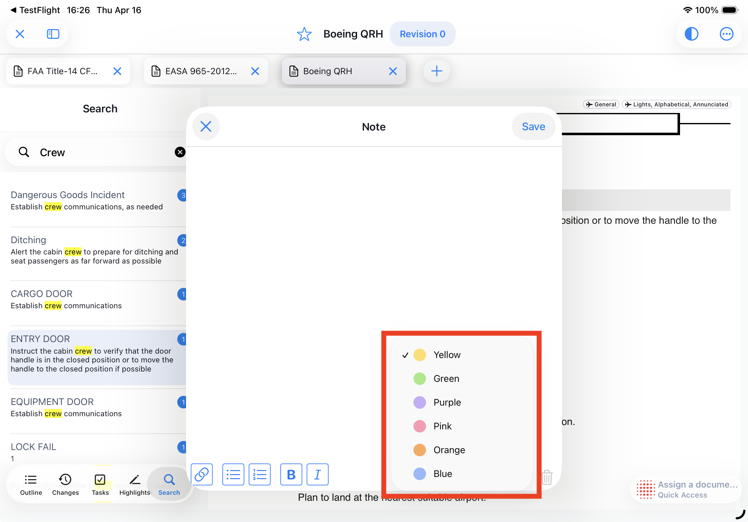 Note: The last selected color will be used as the default color for the next highlight or note.