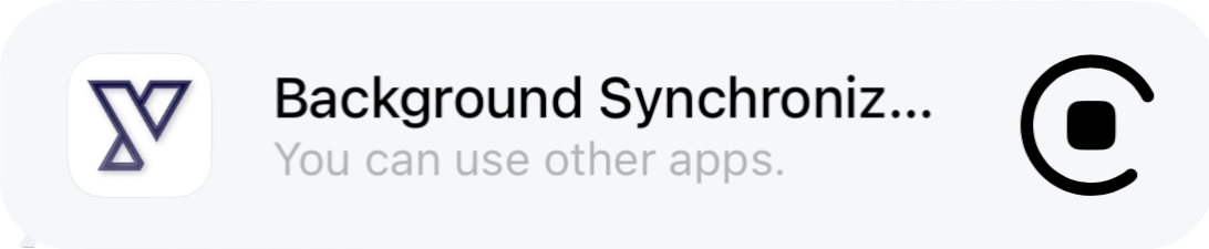 The background sync can continue reliably only when the app is in the background, with progress shown via Live Activities.