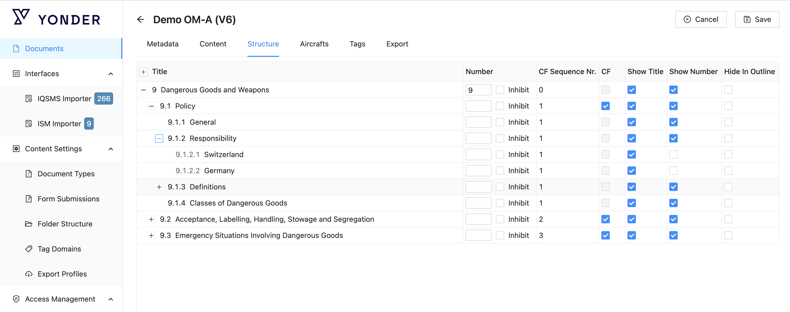 The “Structure” tab allows selected users to fine-tune properties related to the structure of a document.