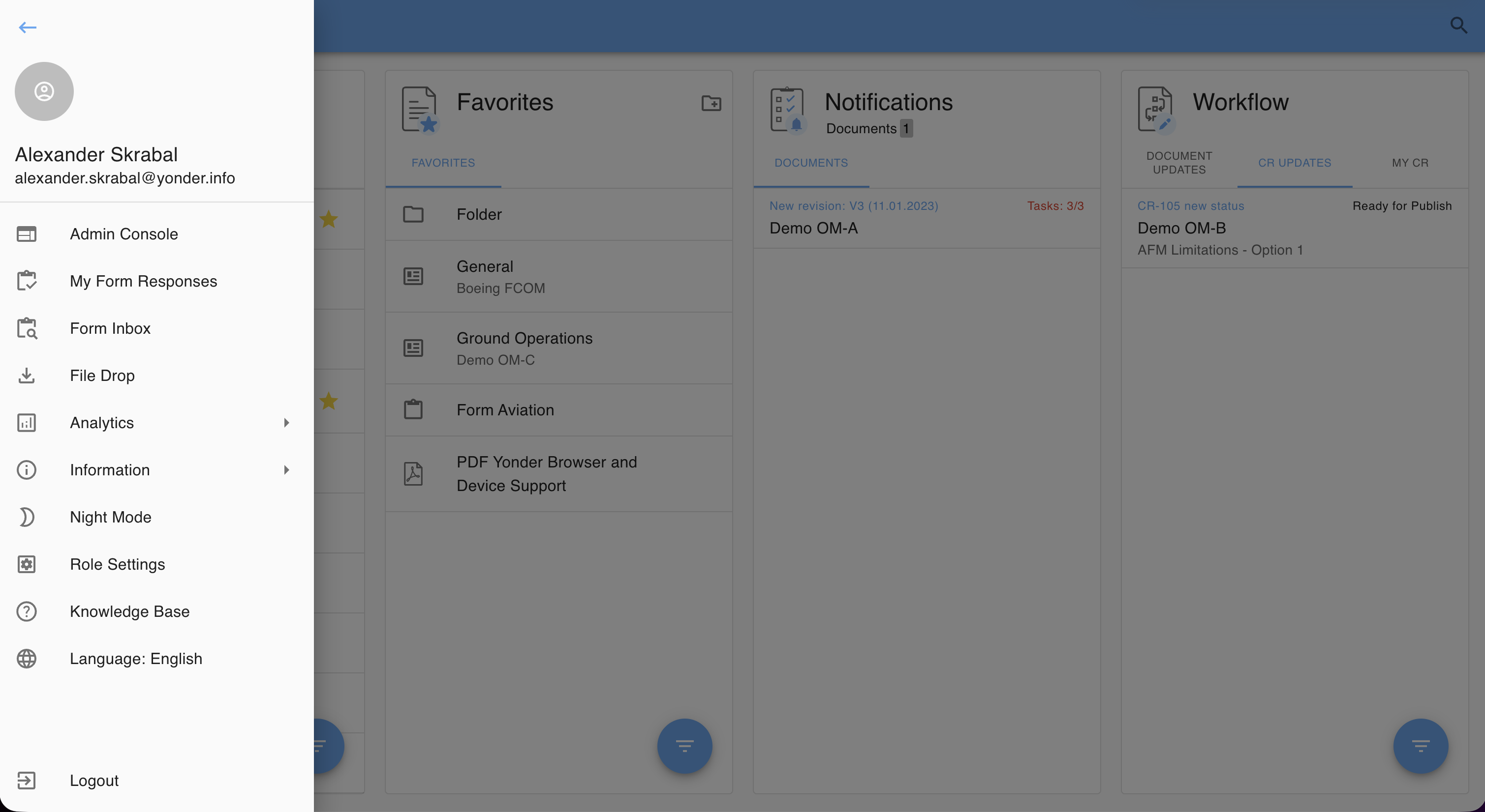 | Logout | Sign out of the Yonder application. |