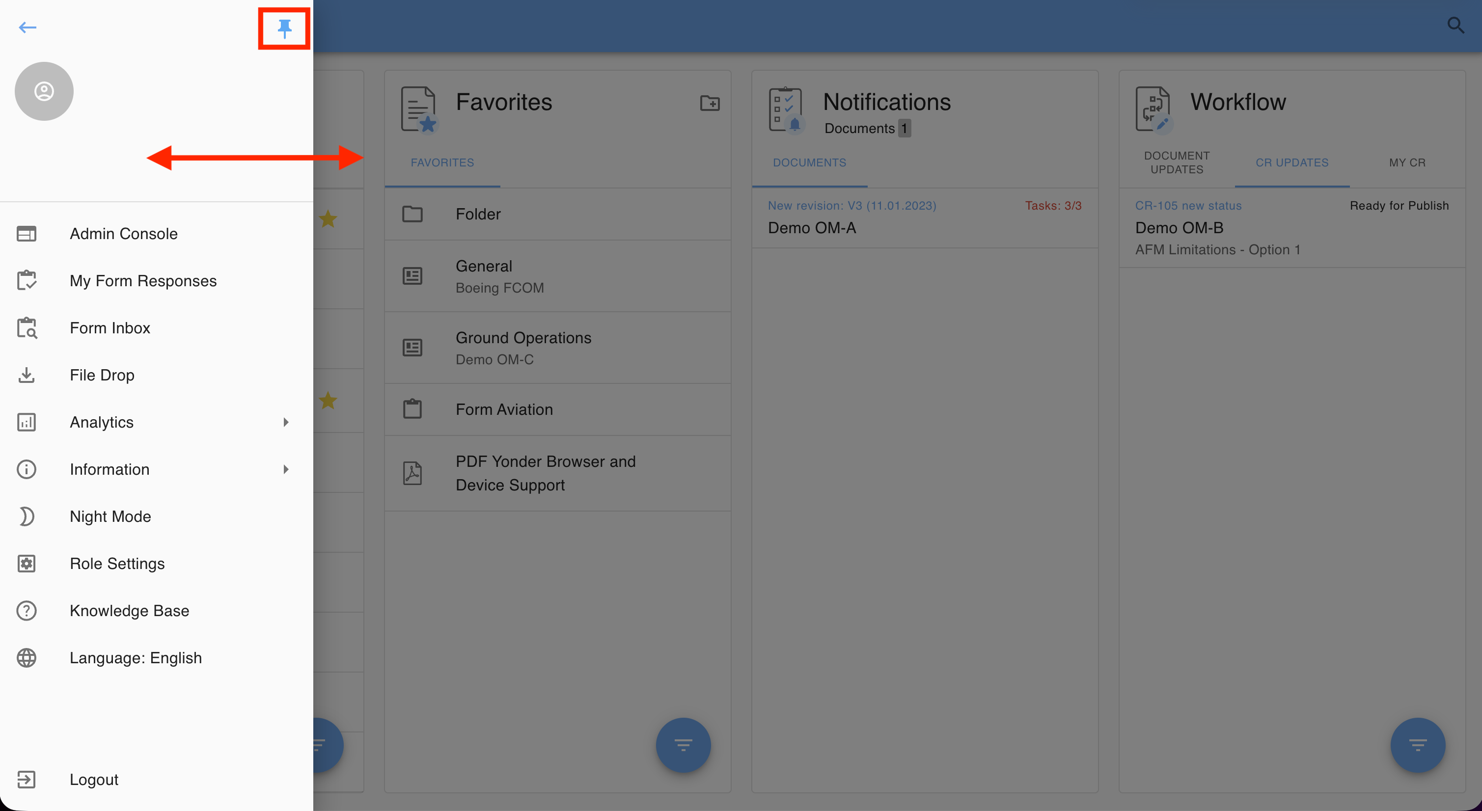 | Analytics | Access compliance reports, compare revisions, and view the history log (depending on permissions). |