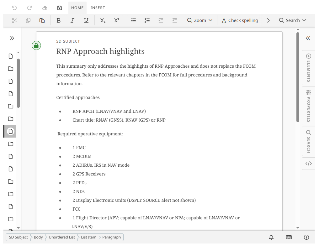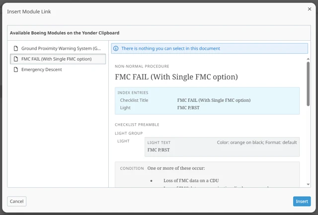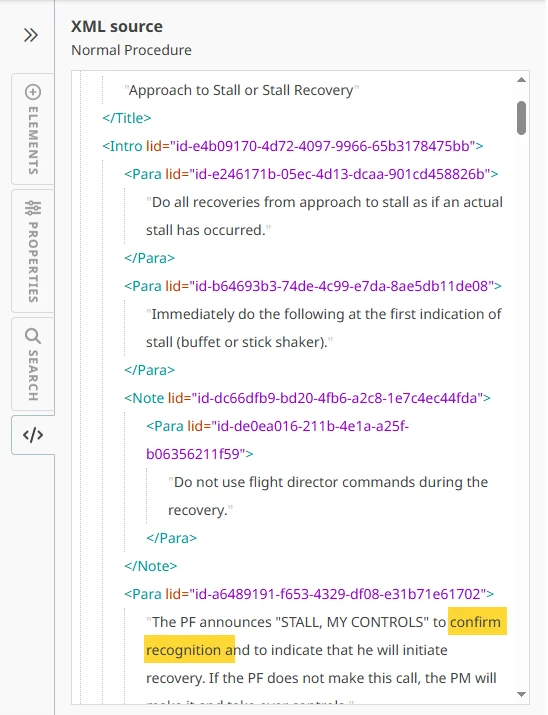 The OEM XML editor in Yonder is a web-based structured editor used to create and maintain XML-based documentation (e.g. Airbus FlightOps, Boeing FTID).