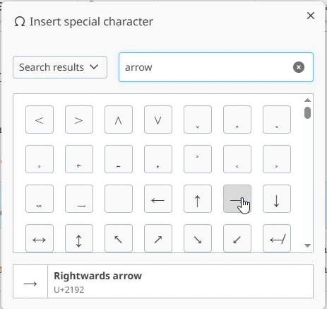 - Insert symbols and special characters from a searchable popup