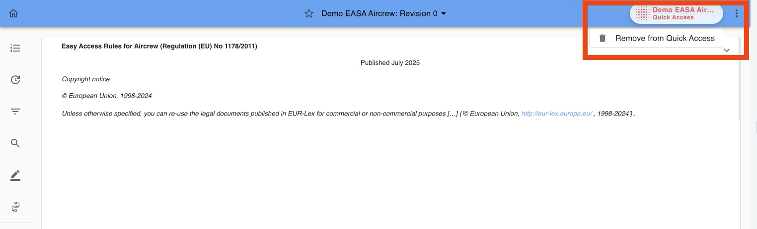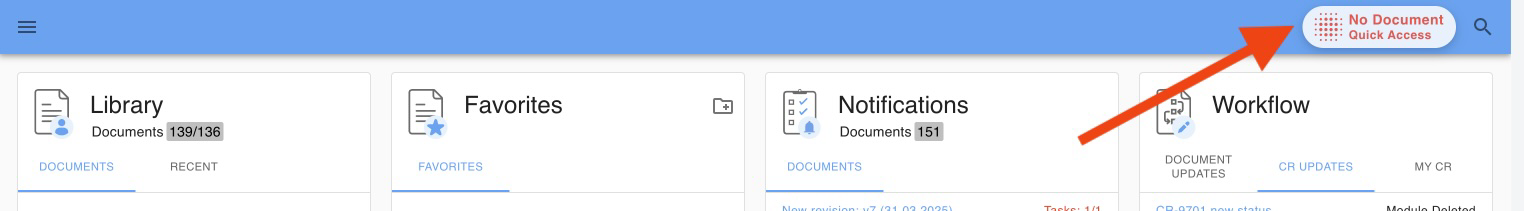 The availability of the Quick Access Button is controlled by the company administrator. If enabled at company level, users can set their personal Quick Access Document.