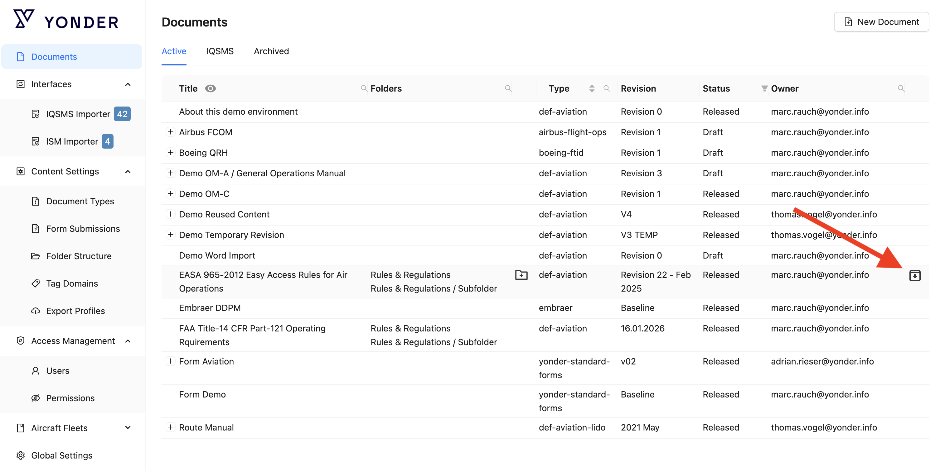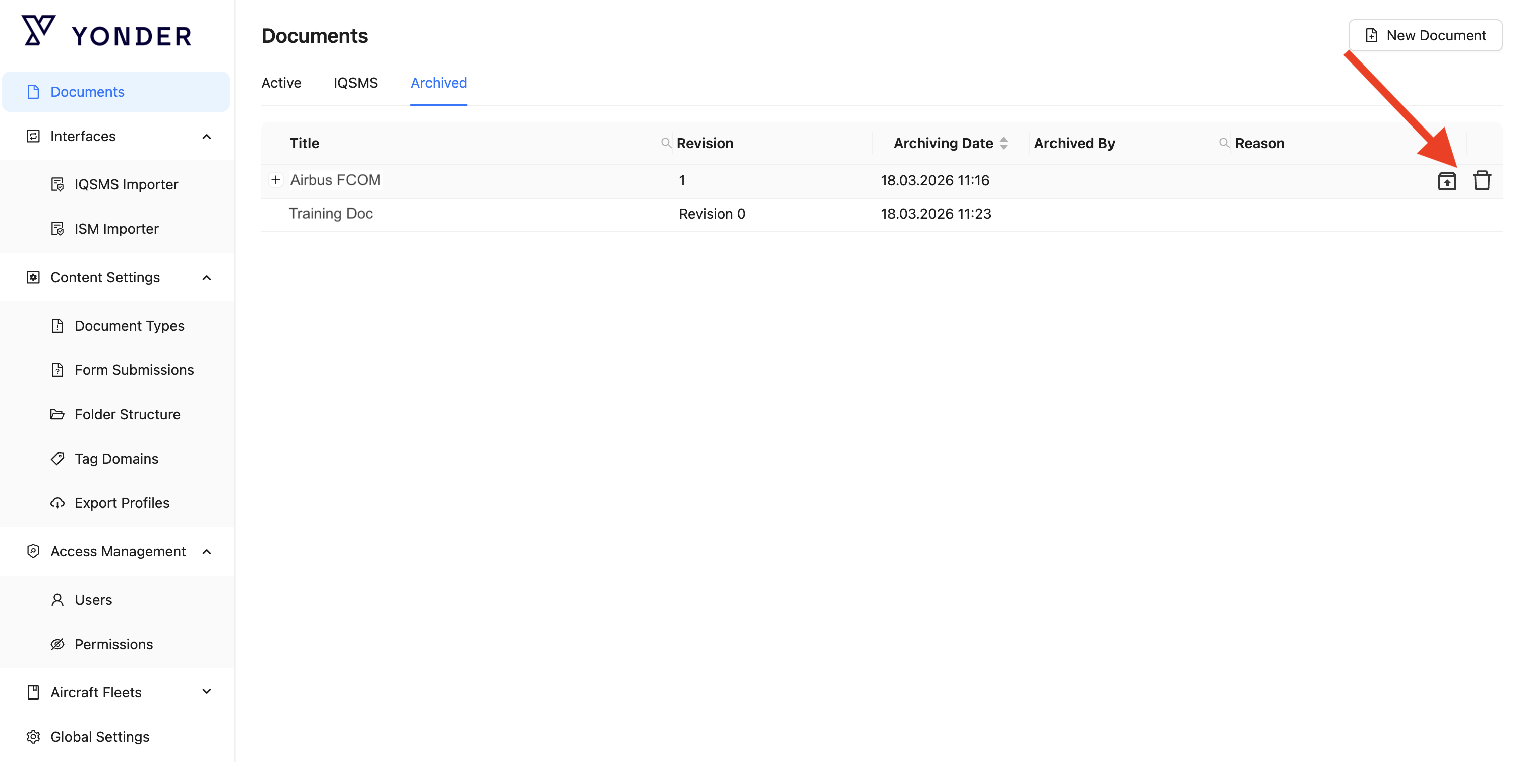 - After confirmation, the document will be removed from the Active list and made available in the Archived list.