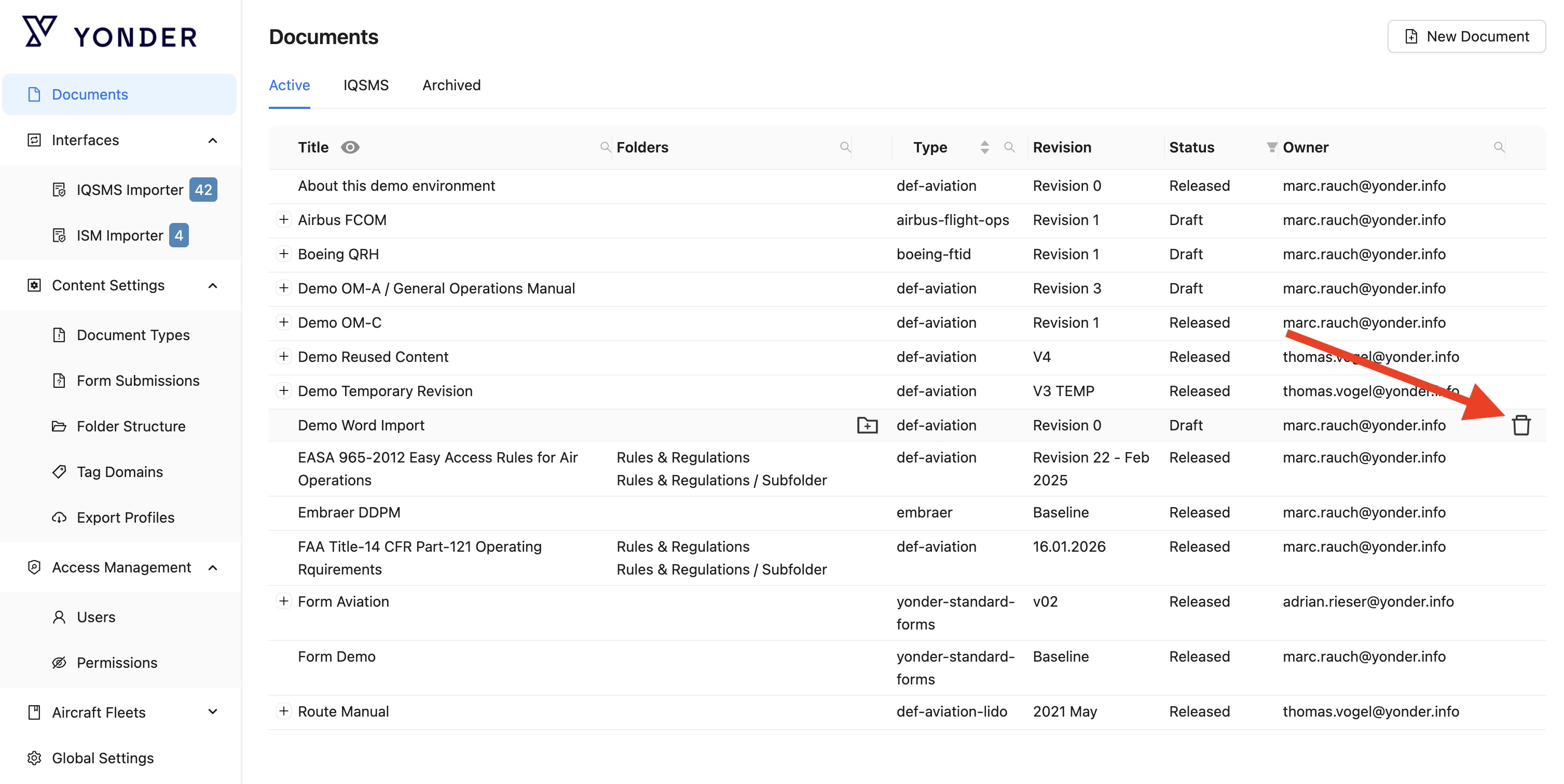 - Click the Delete Document icon.